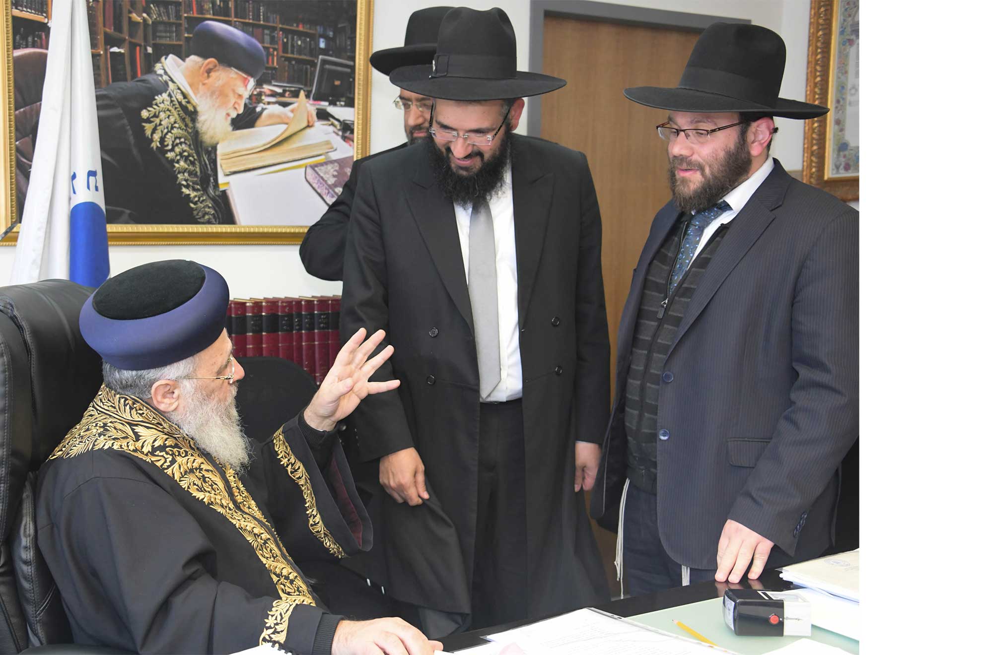 הראשון לציון מברך את רבני לימודי דעת הרב אורי גרילוס והרב ארז אלחרר על תוכניות לימוד ההלכה בלימודי דעת, שעורי הלכה בהירים, רב תומך ומבחנים לשינון וחזרה.